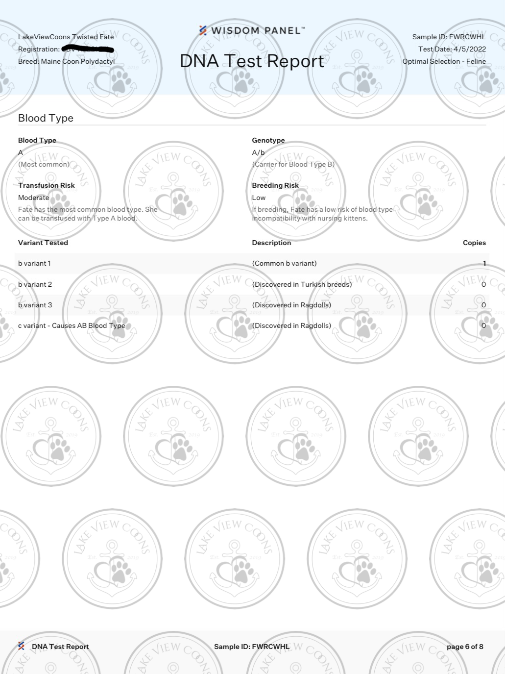 All of Lake View Coons’ Kings are CLEAR of Factor XII Deficiency and MCR1, and therefore do not pose a risk of producing kittens who would be at risk for this disorder, despite a Queen being a CARRIER.